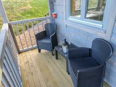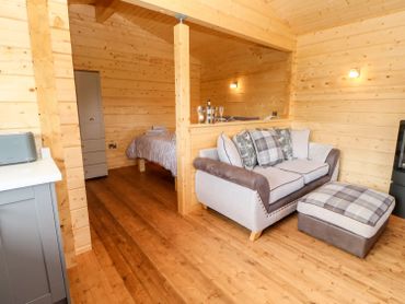 Each cabin has a private balcony and outside space, with garden furniture and an alluring hot tub. Inside, the cabins offer well-presented, studio-style layouts with living and kitchen area, as well as a king-size double bed and a contemporary shower room.